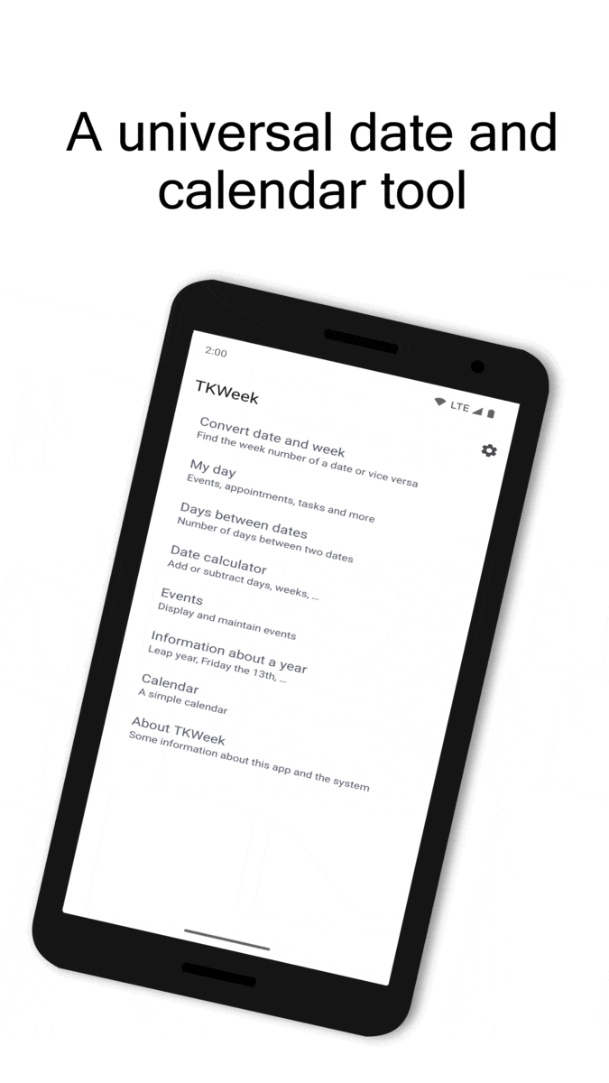 Curious to know when Friday 13th takes place? TKWeek will tell you. The app has many national and international public holidays built in, for example Reformation Day, St. Martin's Day, Christmas, Good Friday, Seven Sleepers Day, Pentecost, Ash Wednesday, and Easter.